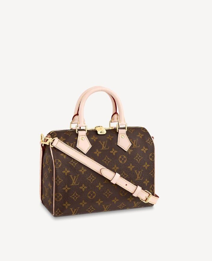ルイヴィトンならではのモノグラムキャンバスで仕上げた「スピーディバンドリエール 25」。日常生活にぴったりのシティバッグです。「スピーディ」の前身であるバッグ「エクスプレス」は、1930年代の旅人のために作られたもの。その名は加速化が著しかった当時の移動手段にヒントを得ています。一目でそれと分かる独特のシルエット、ロール仕上げのレザーハンドル、刻印を施したパドロック、取外し可能なストラップなど、すべてのディテールが「スピーディ」を特別な存在にしています。 本製品は折り畳んだ状態でお届けいたします。これは、メゾンを象徴する折り畳んでトランクに収納できるソフトラゲージの伝統に由来するものです。予めご了承ください。