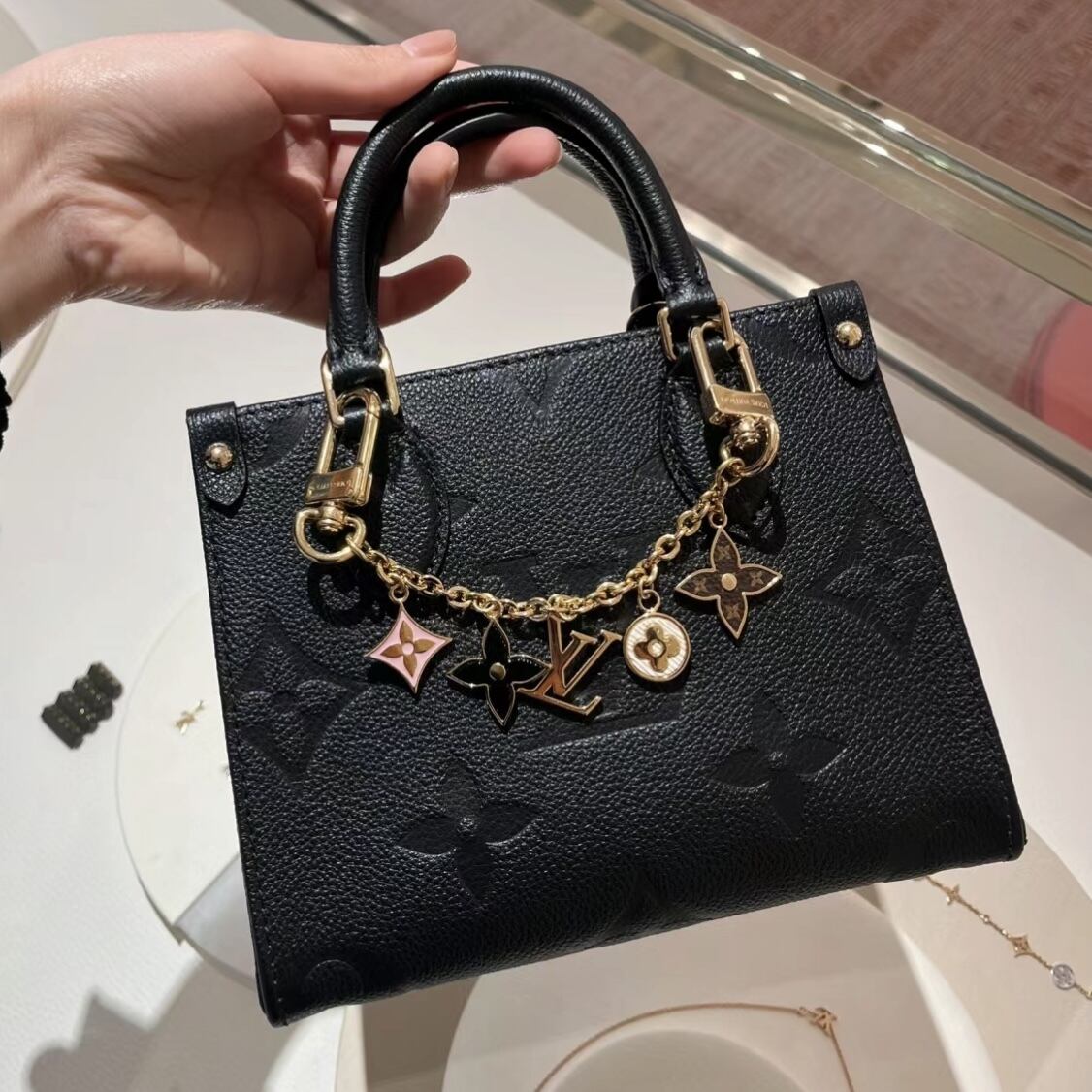モノグラムがエンボスされたモノグラム・アンプラント レザーで仕立てたトレンディなマイクロバッグ「オンザゴー BB」。特徴的なハンドルマウントやコーナーにあしらったビス(鋲)を施したレザータブなど、オリジナルモデルのディテールをすべて備えた小ぶりのアイテムです。スマートフォンとコンパクトウォレットがぴったり収まり、取外し & 調節可能なストラップで肩掛けも楽しめます。
