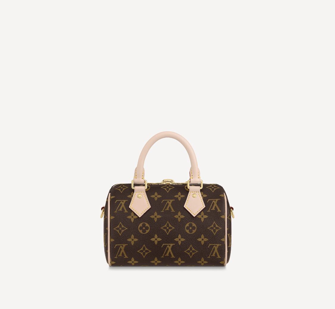 伝統的な旅行鞄「スピーディ」をミニチュアサイズに仕上げた「スピーディ バンドリエール 20」。