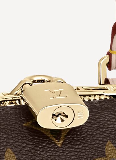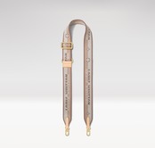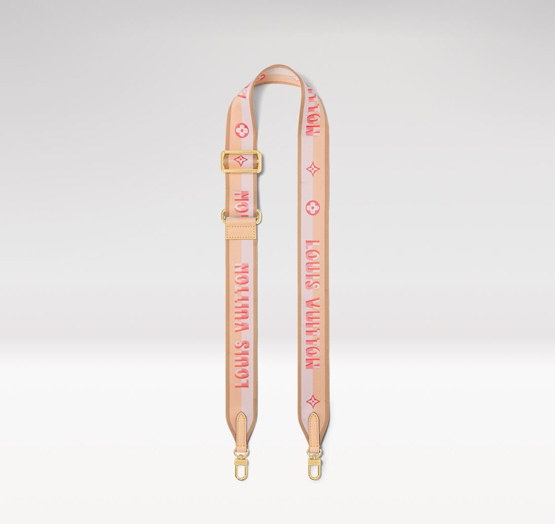 ロール仕上げのレザーハンドルに加え、「Louis Vuitton」シグネチャーを織り込んだ取外し可能な幅広のテキスタイルストラップを備えています。