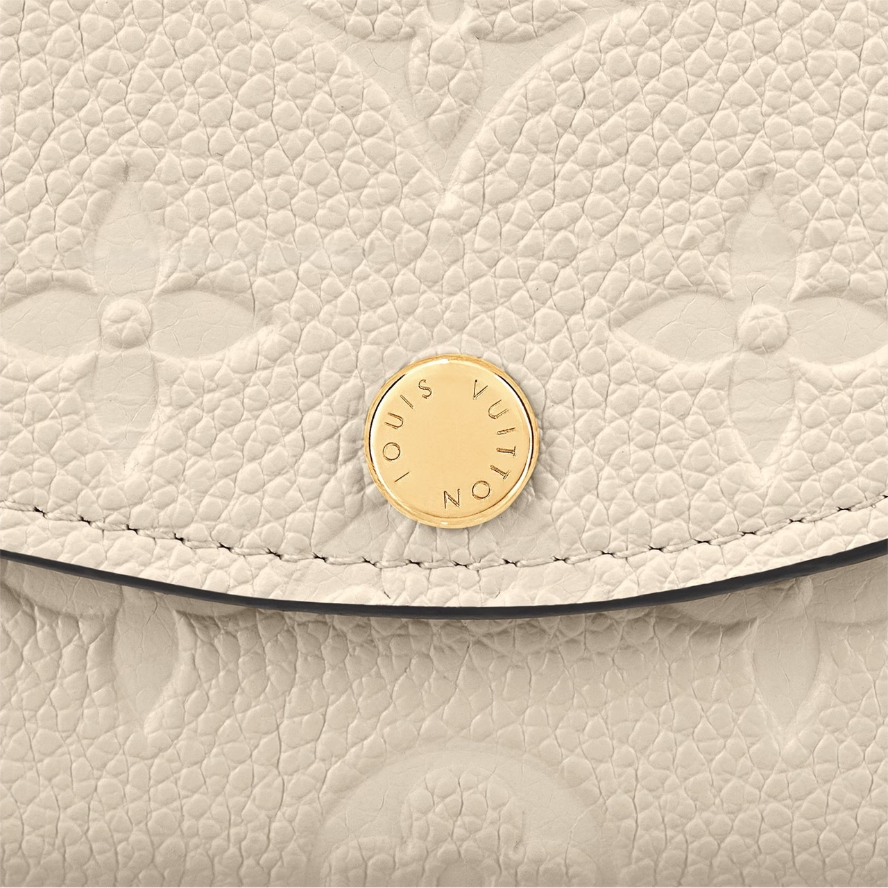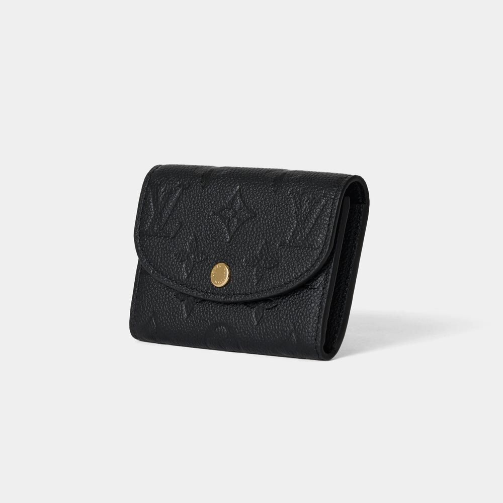 アイコニックなモノグラム・パターンのエンボス加工が美しいモノグラム・アンプラント レザーを使用した「ポルトモネ・ロザリ」。丸みを帯びたフラップは、「Louis Vuitton」の刻印入りのゴールドカラーのスナップボタンで開閉する仕立てです。ファスナー付きコインポケット、フラットポケット、2つのカードスロットを備えた内装も魅力です。