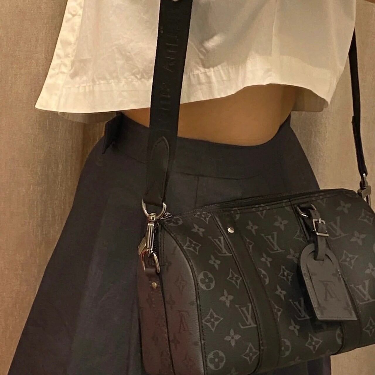 ルイ・ヴィトンのクラシカルな旅行鞄「キーポル」をモノグラム・エクリプス キャンバスでミニチュアサイズに仕立てた、スタイリッシュかつ実用的な「シティ・キーポル」。2018年にキム・ジョーンズが発表した「アップサイド・ダウン」コレクション同様に、アイコニックなモノグラム・パターンを反転させてサイドパネルにあしらい遊び心を演出しました。取外し可能なシグネチャーストラップで、日常の必需品をエレガントに持ち運べます。