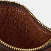 カードケースのシンプルなデザインに、ファスナー開閉式のマチ付きポーチを組み合わせ、実用性を高めました。ポーチ部分は現金やコイン、領収書を収納するのにぴったり。モノグラム・キャンバスで精緻に仕立てたフレッシュなモデルに、カラフルなレザーのライニングと、ゴールドカラーのメタルで象ったLV サークルのファスナー引き手でアクセントを効かせました。